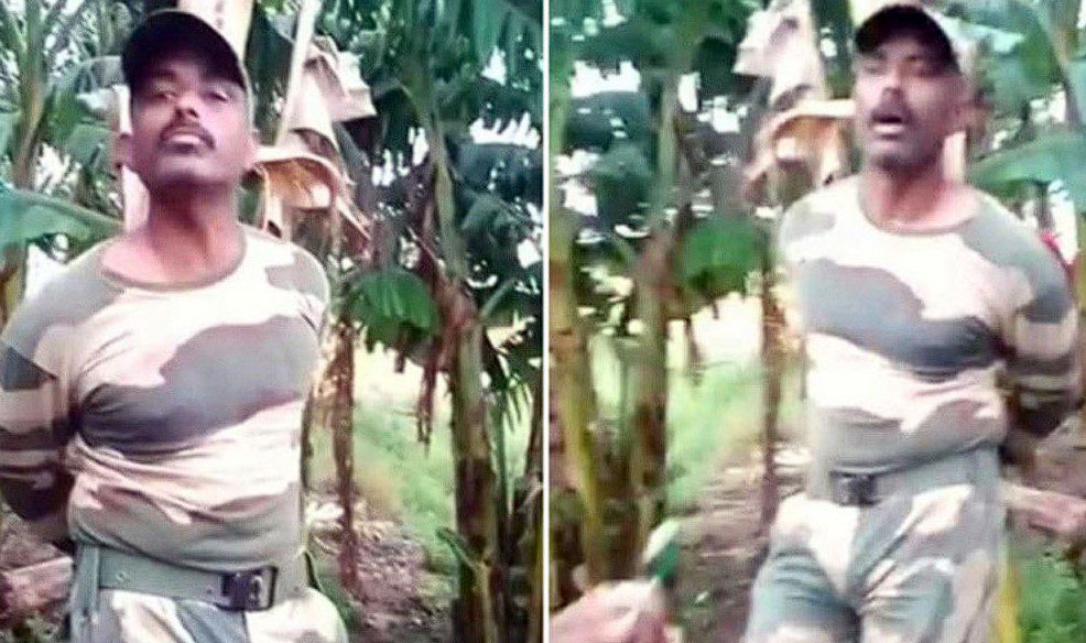 চাঁপাইনবাবগঞ্জ সীমান্তে অবৈধভাবে বাংলাদেশে অনুপ্রবেশের দায়ে বিএসএফের এক সদস্যকে আটক করে কলাগাছের সঙ্গে বেঁধে রেখেছে স্থানীয় জনতা।