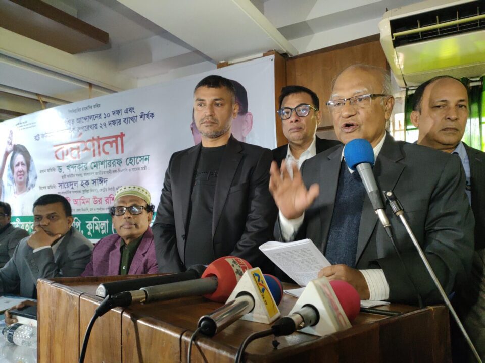 রবিবার বিকেলে ঢাকা চট্টগ্রাম মহাসড়কের পাশে একটি কনফারেন্স হলে এই কর্মশালা অনুষ্ঠিত হয়। কুমিল্লা দক্ষিণ জেলা বিএনপির আহবায়ক হাজী আমিনুর রসিদ ইয়াছিনের সভাপতিত্বে কর্মশালায় প্রধান অতিথি হিসেবে উপস্থিত ছিলেন বাংলাদেশ বিএনপির স্থায়ী কমিটির সদস্য ড.খন্দকার মোশাররফ হোসেন