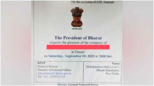 জি-২০ জোটের সম্মেলনে যোগদানকারী বিদেশি নেতাদের আমন্ত্রণপত্রে ‘প্রেসিডেন্ট অব ইন্ডিয়া’র পরিবর্তে ‘প্রেসিডেন্ট অব ভারত’ (President of Bharat) শব্দটি ব্যবহার করা হয়েছে