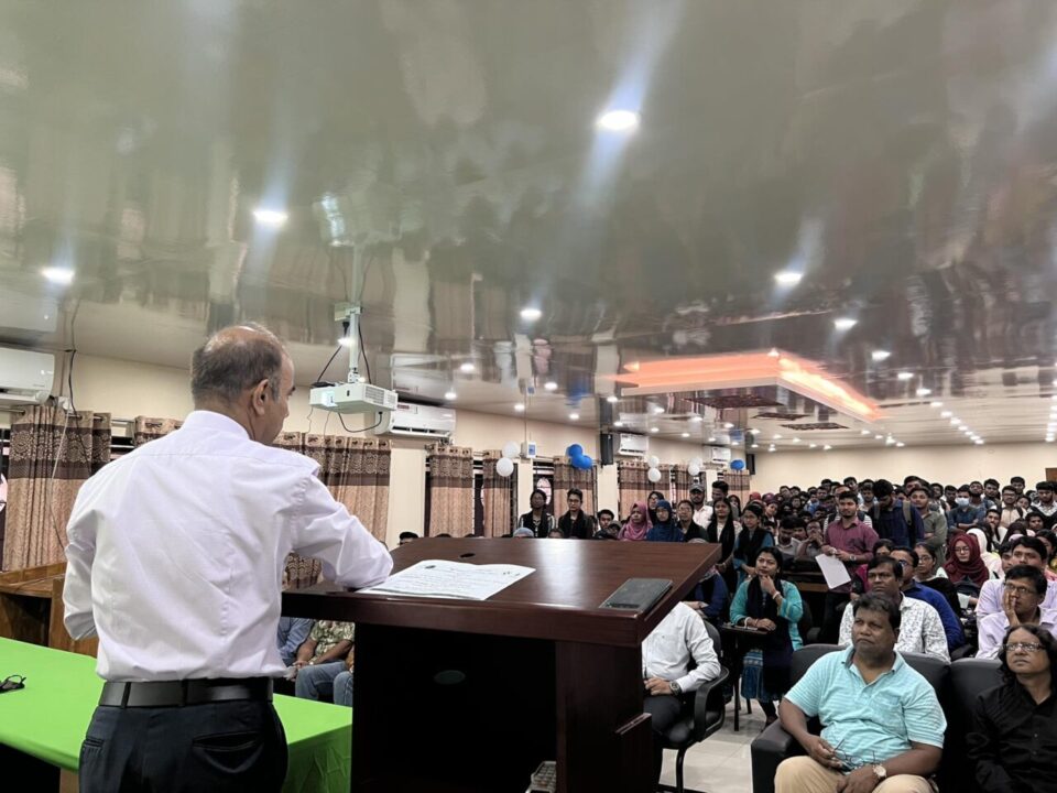 অনুষ্ঠানের প্রধান আলোচক ও রসায়ন বিভাগের সহযোগী অধ্যাপক ড. মোঃ আবদুল মাজেদ পাটোয়ারী শিক্ষক-শিক্ষার্থীদের ইউনিভার্সিটি অব মালেশিয়া সারাওয়াক এবং সানওয়ে ইউনিভার্সিটি, মালেশিয়া কি কি সুযোগ সুবিধা আছে তা দেখান। এবং কীভাবে শিক্ষার্থীরা সেখানে পড়তে যাবে কি কি সুযোগ সুবিধা তারা পাবে তা বলেন।