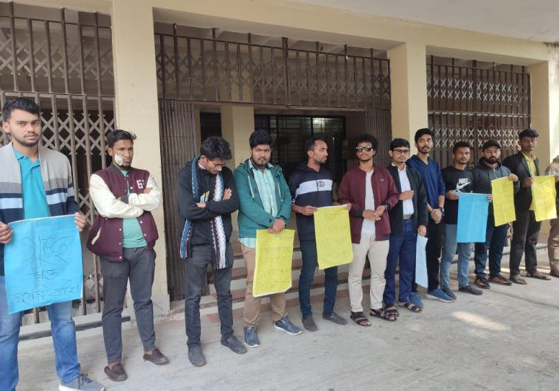 রবিবার (০৫ জানুয়ারী) বিশ্ববিদ্যালয়ের গোল চত্ত্বর ও প্রশাসনিক ভবনের সামনে বৈষম্যবিরোধী ছাত্র আন্দোলনের আহ্বানে এই মানববন্ধন অনুষ্ঠিত হয়।