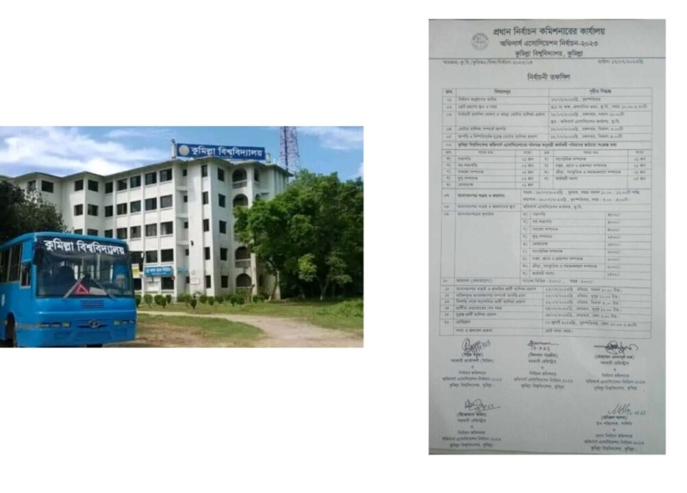 আব্দুল্লাহ, কুবি প্রতিনিধি: কুমিল্লা বিশ্ববিদ্যালয়ের (কুবি) অফিসার্স এসোসিয়েশন নির্বাচন-২০২৩ এর নির্বাচনী তফসিল ঘোষণা করা হয়েছে। এতে আগামী ২৭ জুলাই নির্বাচনের তারিখ ঘোষণা করা হয়েছে। মঙ্গলবার (১৮ জুলাই) প্রধান নির্বাচন কমিশনার মনিরুল আলম ও চারজন নির্বাচন কমিশনারের স্বাক্ষরিত নির্বাচনী তফসিল ঘোষণা করা হয়।