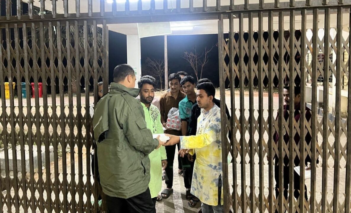 কুমিল্লা বিশ্ববিদ্যালয়ের (কুবি) শাখা ছাত্রদল নৈশপ্রহরীদের মাঝে সেহেরির খাবার বিতরণ করেন।