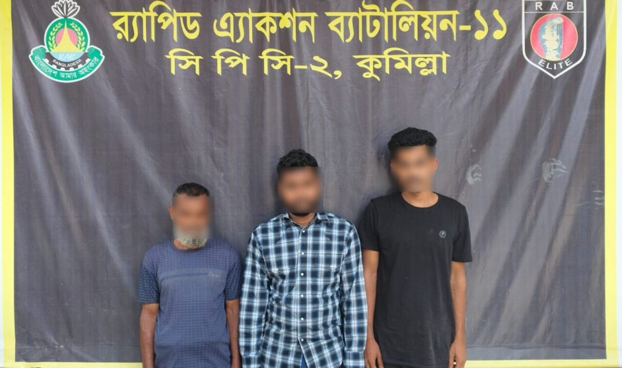 গ্রেফতারকৃতরা হলেন কোতোয়ালী মডেল থানার শারিফপুর গ্রামের মো. রশিদের ছেলে মো. আরিফ (২৮), ফেনী জেলার থানা সদর লালপুর গ্রামের মো. আনোয়ার হোসেনের ছেলে মো. রনি (২৮) এবং কোতোয়ালী মডেল থানার পাথুলিয়া গ্রামের মৃত কফিল উদ্দিনের ছেলে মো. ইমান হোসেন (৫৯)।