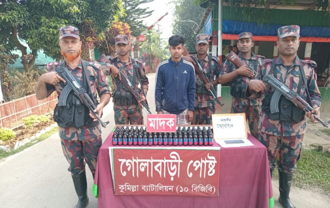 কুমিল্লা ব্যাটালিয়ন (বিজিবি ১০) এর অধীনস্থ গোলাবাড়ী পোষ্টের বিশেষ টহলদল মাদক ও চোরাচালান বিরোধী অভিযান পরিচালনা করে ফেন্সিডিলসহ এক ভারতীয় নাগরিককে আটক করেছে।