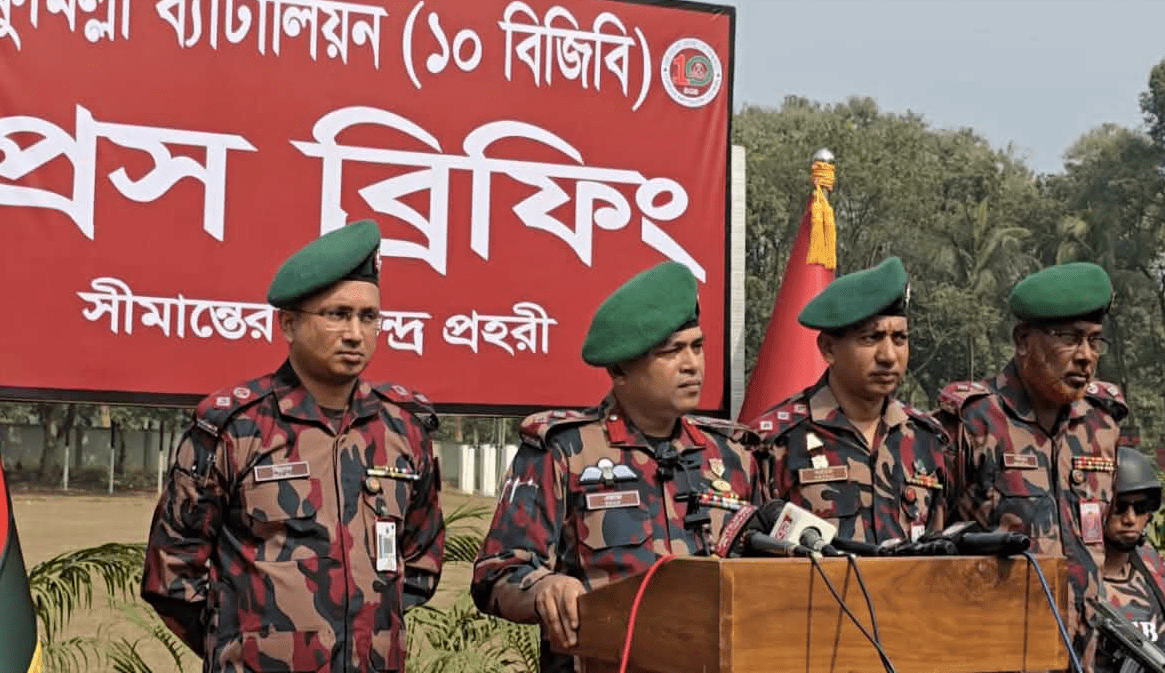 বৃহস্পতিবার সকালে কুমিল্লা ব্যাটেলিয়ন ১০ বিজিবির হেডকোয়ার্টারে প্রেস ব্রিফিংয়ে এই সব তথ্য নিশ্চিত করেন ১০ বিজিবির অধিনায়ক লে: কর্ণেল মীর আলী এজাজ।