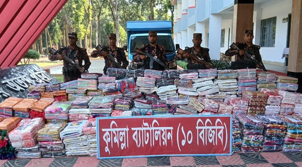 কুমিল্লা সীমান্তে অবৈধ ভারতীয় শাড়ি জব্দ করেছে বিজিবি