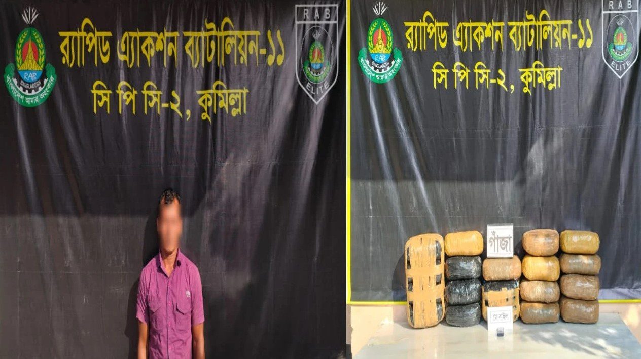 কুমিল্লায় র্যাব-১১ এর বিশেষ অভিযানে বিপুল পরিমাণ গাঁজাসহ এক মাদক ব্যবসায়ীকে আটক করেছে র্যাব সদস্যরা। রবিবার (৯ নভেম্বর) সকালে গোপন সংবাদের ভিত্তিতে র্যাব-১১, সিপিসি-২ এর একটি দল কোতয়ালী মডেল থানার মনাগ্রাম এলাকায় অভিযান পরিচালনা করে।