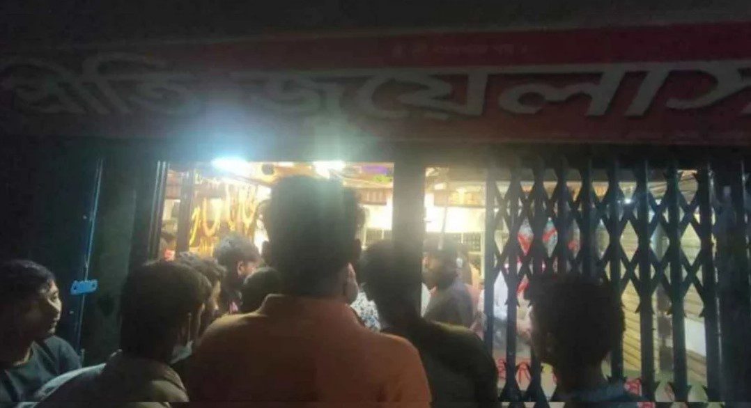 জানা গেছে, শনিবার রাত ৮টার দিকে ৭ থেকে ৮ জনের একটি সশস্ত্র ডাকাত দল স্বর্ণালঙ্কারের ক্রেতা সেজে প্রীতি জুয়েলার্সে প্রবেশ করে। তারা দোকানিকে ক্রয়ের কথা বলে সব স্বর্ণালঙ্কার বের করতে বলে। স্বর্ণালঙ্কার বের করার একপর্যায়ে দোকানদার ও কর্মচারীদের অস্ত্রের মুখে ধরে তারা স্বর্ণালঙ্কার নিয়ে পালানোর চেষ্টা করে। এ সময় পার্শ্ববর্তী মোবাইল ফোনের দোকানদার মোশারফ হোসেন বিষয়টি টের পেয়ে অন্যান্যদের নিয়ে ডাকাতদের প্রতিরোধের চেষ্টা চালান। এ সময় ডাকাতরা গুলি ছুঁড়লে মোশারফ হোসেন গুরুতর আহত হন।