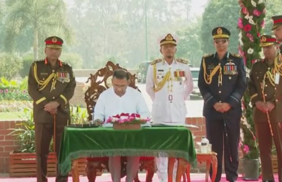 জাতীয় স্মৃতিসৌধের পরিদর্শন বইয়ে প্রধানমন্ত্রীর স্বাক্ষর