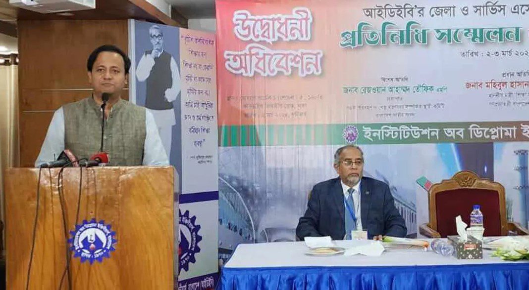 শনিবার (০২ মার্চ) ইনস্টিটিউশন অব ডিপ্লোমা ইঞ্জিনিয়ার্স-বাংলাদেশ (আইডিইবি) মিলনায়তনে আইডিইবির জেলা ও সার্ভিস অ্যাসোসিয়েশনের প্রতিনিধি সম্মেলন ও বর্ধিত সভায় এসব কথা বলেন তিনি।