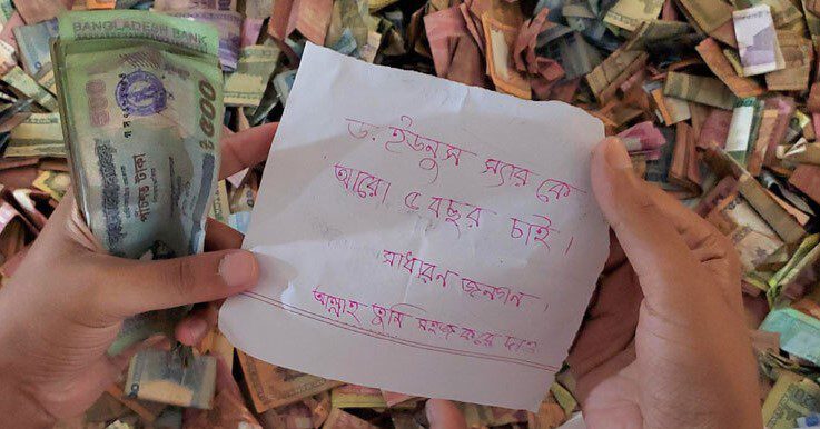 কিশোরগঞ্জের ঐতিহ্যবাহী পাগলা মসজিদের দানবাক্সে টাকার সঙ্গে মনোবাসনা পূরণের আকাঙ্ক্ষার বেশ কিছু চিঠি-চিরকুট পাওয়া গেছে। এর মধ্যে একটি চিরকুট সামাজিক যোগাযোগ মাধ্যম ফেসবুকে ভাইরাল হয়েছে। চিরকুটটিতে লেখা রয়েছে ‘ড. ইউনূস স্যারকে আরও ৫ বছর চাই- সাধারণ জনগণ। আল্লাহ তুমি সহজ করে দাও।’