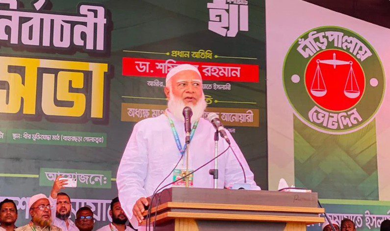 ডা. শফিকুর রহমান বলেন, ‘এবারের নির্বাচন হবে জাতির দিক পরিবর্তনের নির্বাচন, জুলাই বীরদের প্রত্যাশা পূরণের নির্বাচন, এই নির্বাচন হচ্ছে মা-বোনদের জন্য একটা নিরাপদ বাংলাদেশ গড়ার নির্বাচন, এই নির্বাচন শিশুর স্বপ্ন মেলে ধরার নির্বাচন, এই নির্বাচন হচ্ছে পচা-ঘুণে ধরা ৫৪ বছরের যে রাজনীতি দফায় দফায় ফ্যাসিবাদের জন্ম দিয়েছে সেই রাজনীতিকে বিদায় জানানোর, লাল কার্ড দেখানোর নির্বাচন।’