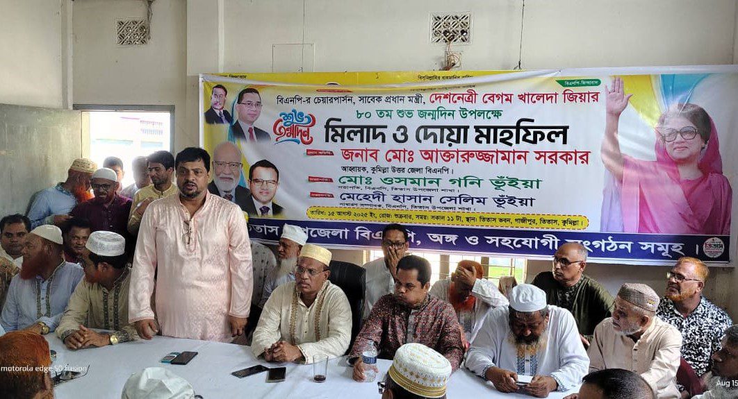 কুমিল্লার তিতাসে বিএনপির চেয়ারপার্সন ও সাবেক প্রধানমন্ত্রী দেশনেত্রী বেগম খালেদা জিয়ার ৮০ তম শুভ জন্মদিন উপলক্ষে মিলাদ ও দোয়া মাহফিল অনুষ্ঠিত হয়েছে।