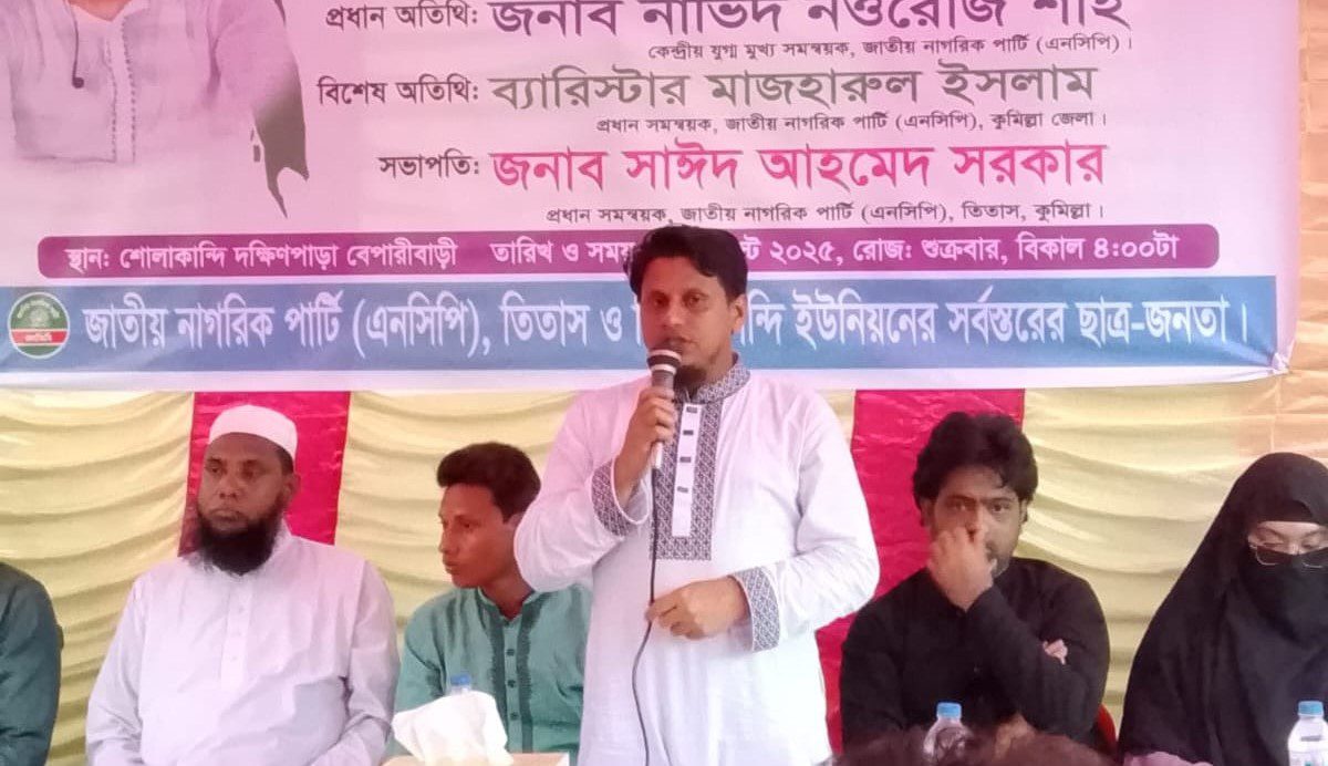 জাতীয় নাগরিক পাটি (এনসিপি) তিতাস উপজেলা শাখার প্রধান ও কেন্দ্রীয় সমন্বয়ক সাঈদ আহমেদ সরকারের সভাপতিত্বে প্রধান অতিথির বক্তব্য রাখেন জাতীয় নাগরিক পাটি এনসিপির কেন্দ্রীয় মুখ্য সমন্বয়ক নাভিদ নওরোজ শাহ। জাতীয় নাগরিক পাটি (এনসিপি)তিতাস উপজেলা শাখার যুগ্ম সমন্বয়ক মো.লুৎফর রহমানের পরিচালনায় বিশেষ অতিথির বক্তব্য রাখেন জাতীয় নাগরিক পাটি (এনসিপি) কুমিল্লা জেলা প্রধান সমন্বয়ক ব্যারিস্টার মাজহারুল ইসলাম,জাতীয় নাগরিক পাটি (এনসিপি) তিতাস উপজেলা শাখার যুগ্ম-সমন্বয়ক মামুনুর রশীদ, সদস্য রুহুল আমীন সরকার, জামান মিয়া,জাতীয় নাগরিক পাটি (এনসিপি)হোমনা উপজেলা শাখার যুগ্ম সমন্বয়ক মো.স্বাধীন,যুগ্ম সমন্বয়ক আবদুর রহিম, জাতীয় নাগরিক পাটি (এনসিপি)তিতাস উপজেলা শাখার সদস্য ও মহিলা বিভাগের প্রধান নাদিয়া আক্তার সুমা প্রমুখ।