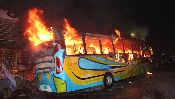 ফায়ার সার্ভিস জানায়, এই তিন দিনে ঢাকা সিটিতে ৪টি, গাজীপুরে ৫টি, সিলেটে একটি ও দিনাজপুর একটি যানবাহনে অগ্নিসংযোগ করেছে দুর্বৃত্তরা। এ ঘটনায় ৩টি কাভার্ডভ্যান, ৫টি বাস ও ৩টি ট্রাক ক্ষতিগ্রস্ত হয়। এসব আগুন নির্বাপণ করতে ফায়ার সার্ভিস ও সিভিল ডিফেন্সের ১৯টি ইউনিট ও ৯৬ জন মানুষ কাজ করে।