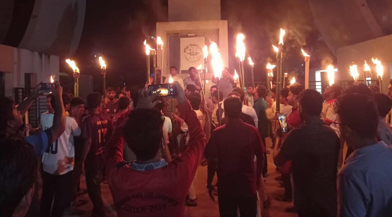 শুক্রবার (১৭ অক্টোবর) রাত সাড়ে ৮ টায় বিশ্ববিদ্যালয়ের মূল ফটকে “জাগো বাহে, কোনঠে সবাই, তিস্তা বাঁচাও, মানুষ বাঁচাও” স্লোগানকে সামনে রেখে এই মিছিল করেন তাঁরা।