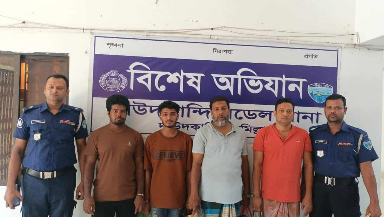 দাউদকান্দি থানা পুলিশের ভারপ্রাপ্ত কর্মকর্তা (ওসি) জুনায়েদ চৌধুরী বলেন, বিভিন্ন নাশতার অভিযোগে তাদের গ্রেপ্তার করা হয়েছে। এ ব্যাপারে মডেল থানায় সন্ত্রাস বিরোধী আইনে মামলা দায়েরের পর দুপুরে আসামিদের কুমিল্লা জেলহাজতে পাঠানো হয়েছে।