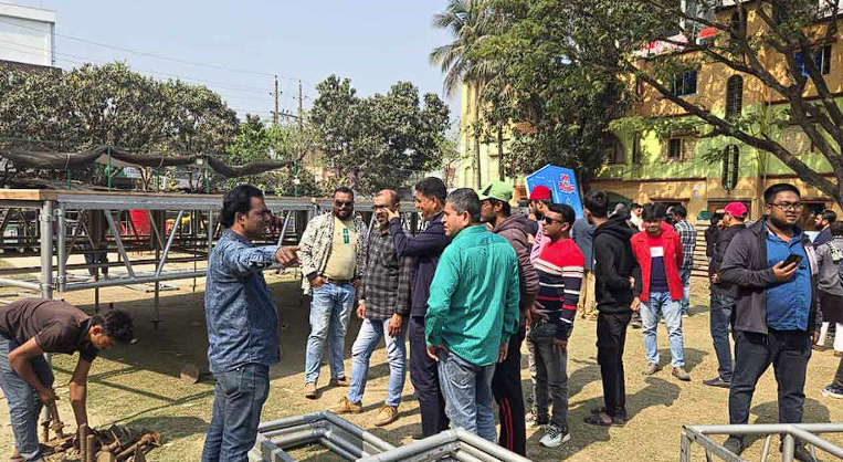 তারেক রহমানের আগমনকে কেন্দ্র করে চলছে মঞ্চ তৈরির কাজ। বুধবার (২৮ জানুয়ারি) দুপুরে মাঠ এলাকা ঘুরে দেখা যায়, মঞ্চ তৈরি এবং মাইক লাগানোর কাজে ব্যস্ত সময় পার করছেন শ্রমিকরা। তার এই আগমনকে কেন্দ্র করে বিএনপি নেতাকর্মীদের মধ্যে বইছে উৎসবের আমেজ।
