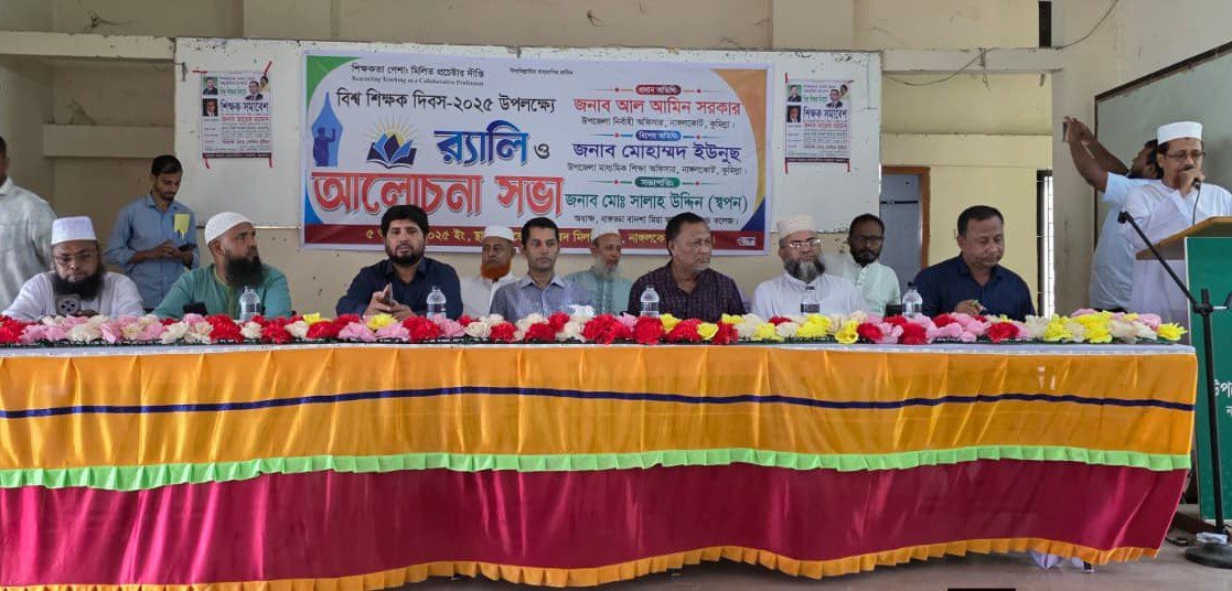 শিক্ষকতাকে একটি সহযোগী পেশা হিসেবে পুনর্গঠন এই প্রতিপাদ্য নিয়ে কুমিল্লার নাঙ্গলকোট উপজেলায় প্রশাসনের আয়োজনে ৫অক্টোবর রবিবার বিশ্ব শিক্ষক দিবস উপলক্ষ্যে র্যালি ও আলোচনা সভা নাঙ্গলকোট উপজেলা মিলনায়তনে অনুষ্ঠিত হয়েছে।