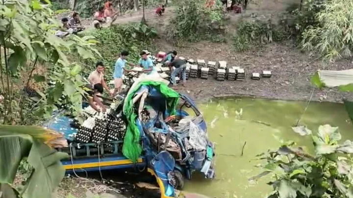 নাটোরে বাসের ধাক্কায় খাদে পিকআপ, চালক নিহত