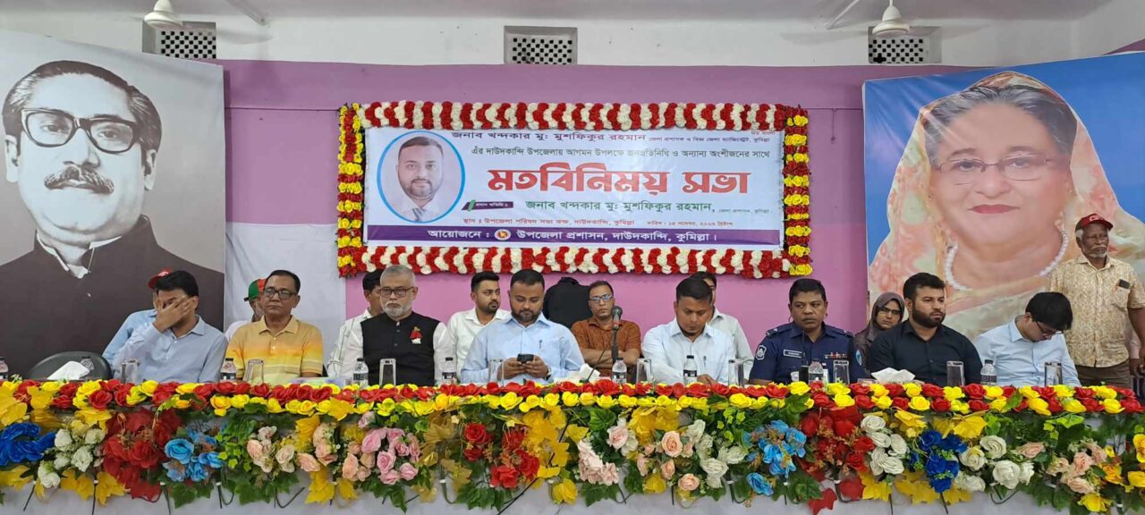 কুমিল্লা জেলা প্রশাসক খন্দকার মো. মুশফিকুর রহমান বলেন, সামনে জাতীয় নির্বাচন, দেশে এখন একটি গুরুত্বপূর্ণ সময়। আমাদের ভবিষ্যৎ পাঁচ বছর রাষ্ট্র কারা পরিচালনা করবে এটি জনগণ দ্বারা নির্ধারিত হবে। আমরা যারা সরকারি কর্মকর্তা আছি নির্বাচন কমিশনকে সর্বাত্মক সহযোগিতা করা আমাদের সাংবিধানিক দায়িত্ব এবং আমরা দায়বদ্ধ । বুধবার (১৫ নভেম্বর) সন্ধ্যায় দাউদকান্দি উপজেলা পরিষদ মিলনায়তনে জনপ্রতিনিধি ও অন্যান্য অংশীজনের সঙ্গে মতবিনিময় সভায় প্রধান অতিথির বক্তব্যে তিনি এসব কথা বলেন।