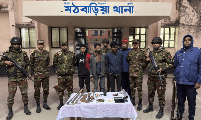 পিরোজপুরে মাদক ও অস্ত্রসহ ৩ যুবককে আটক করেছে পুলিশ