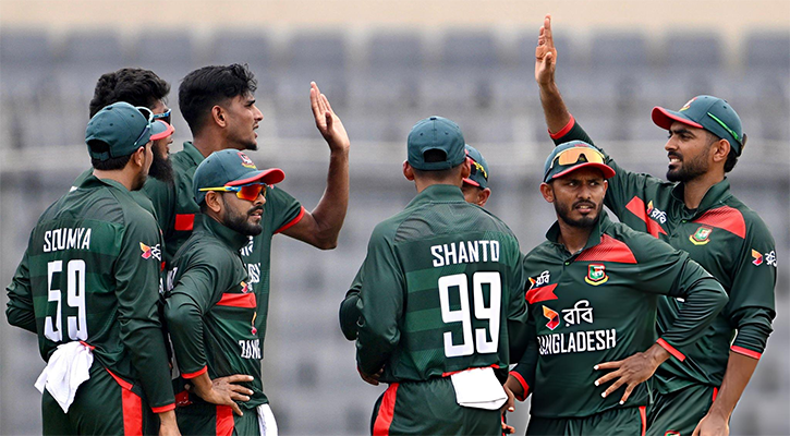নাহিদ ছাড়াও শরিফুল ইসলাম নেন ২টি উইকেট। সৌম্য সরকার, তাসকিন আহমেদ ও রিশাদ হোসেন নেন একটি করে উইকেট।