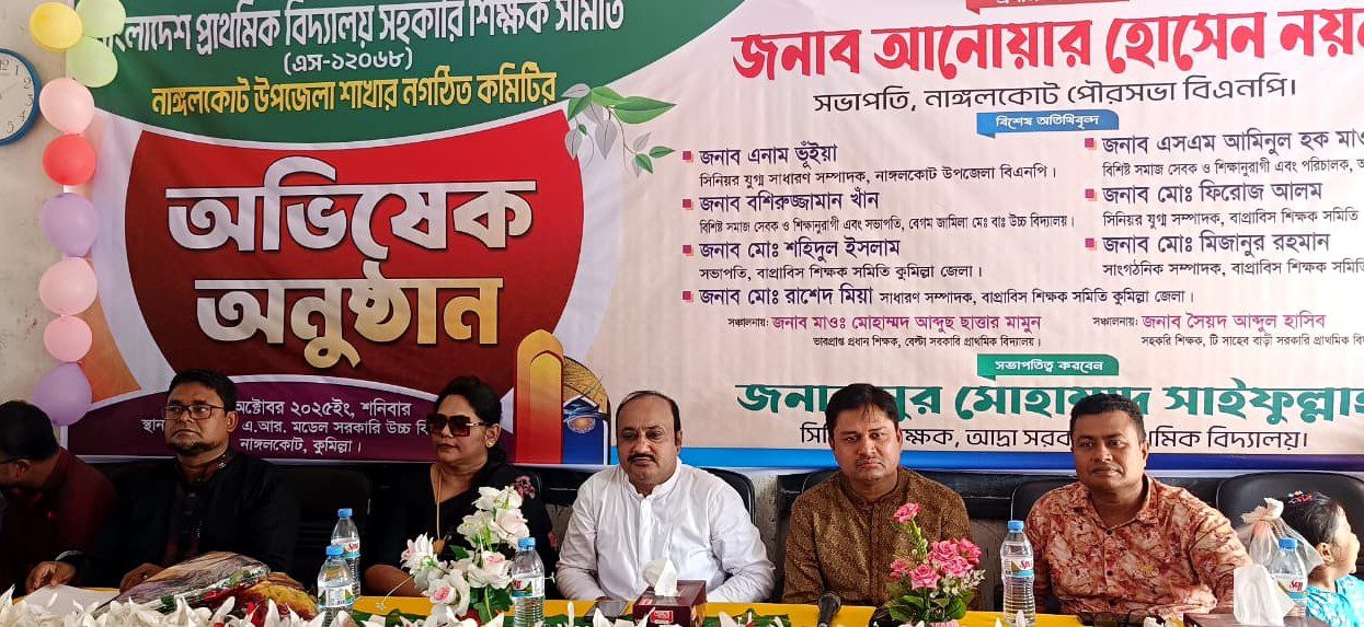 কুমিল্লার নাঙ্গলকোট উপজেলার বাংলাদেশ প্রাথমিক বিদ্যালয় সহকারী শিক্ষক সমিতি নাঙ্গলকোট উপজেলা শাখার নবগঠিত কমিটির অভিষেক অনুষ্ঠান শনিবার সকালে এ আর হাইস্কুলে অডিটোরিয়ামে অনুষ্ঠিত হয়।