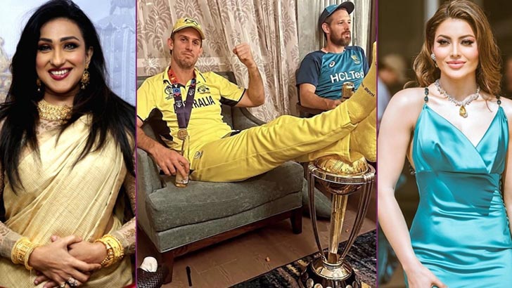 এর পর মিচেল মার্শের সমালোচনায় মেতেছেন বলিউড অভিনেত্রী ঊর্বশী রাউতেলা। তিনিও ইনস্টাগ্রামে বেশ কয়েকটি ছবি পোস্ট করেছেন। যার কোনোটিতে বিশ্বকাপ মাথায় করে রেখেছেন কপিল দেব, আবার কোনোটায় ঘুমানোর সময় কাপকে জড়িয়ে ধরে রেখেছেন ফুটবল তারকা লিওনেল মেসি।