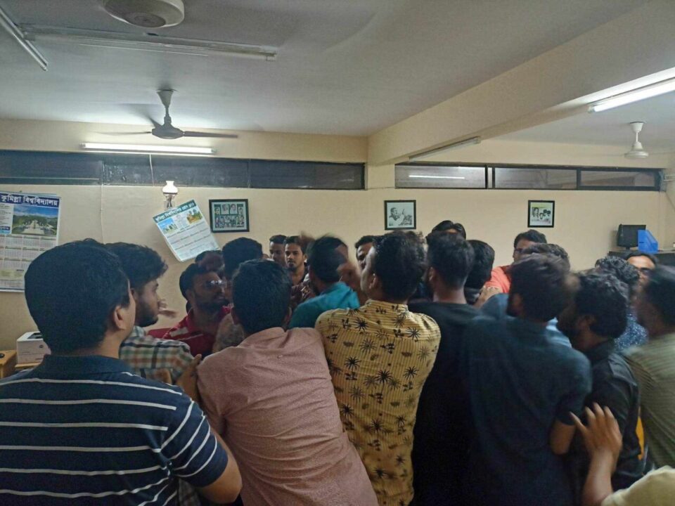 প্রত্যক্ষদর্শীদের সূত্রে জানা যায়, বিশ্ববিদ্যালয়ের মূল ফটকের সামনে ভর্তি পরীক্ষার্থীদের সহায়তার জন্য বুথ বসানোর আবেদন করে বিশ্ববিদ্যালয় শাখা ছাত্রলীগের দুটি গ্রুপ। বুথ ও অন্যান্য বিষয়ে আলোচনার জন্য ছাত্রলীগের দুটি গ্রুপকে প্রক্টর অফিসে ডাকলে প্রক্টর অফিসেই হাতাহাতির ঘটনা ঘটে।