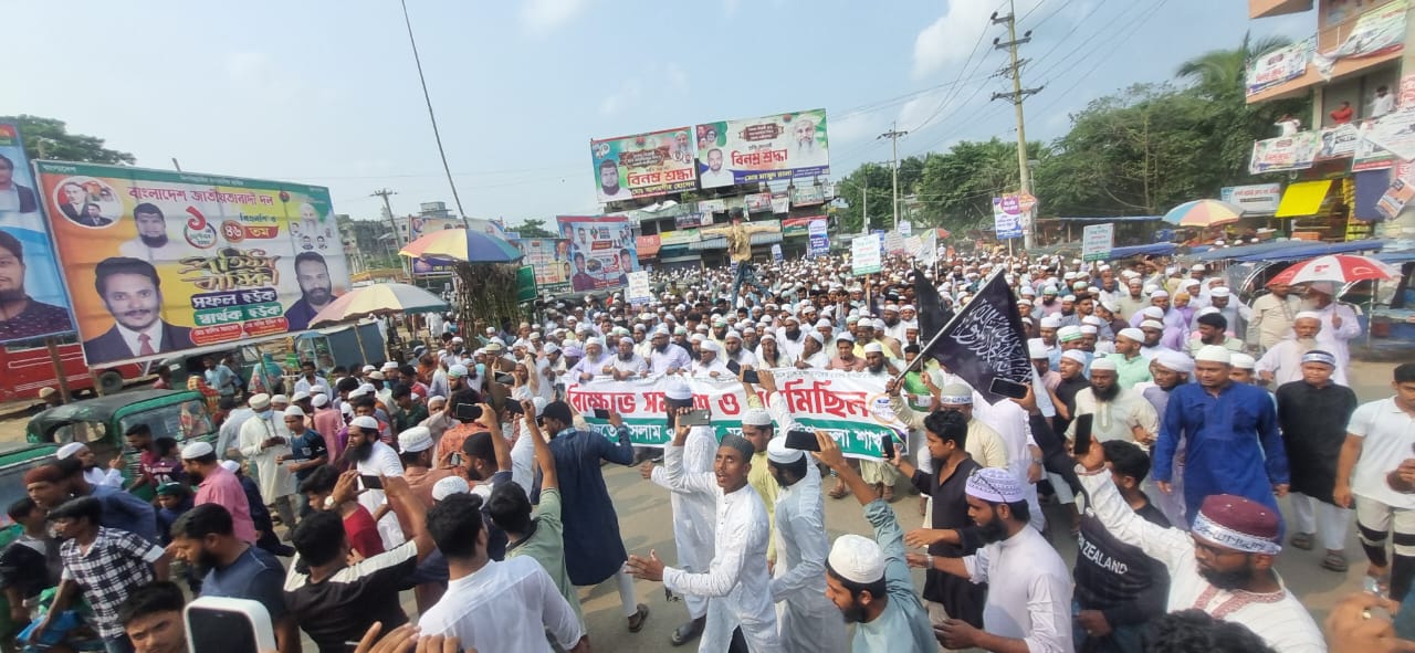 ভারতের মহারাষ্ট্রের হিন্দু পুরোহিত রামগিরি মহারাজ কর্তৃক মহানবী (সাঃ) কে কটূক্তি ও বিজিপির সাংসদ নিতেশ নারায়ণ রানে কর্তৃক মসজিদে ঢুকে মুসলমানদের হত্যার হুমকি দেওয়ার প্রতিবাদে কুমিল্লার মুরাদনগর উপজেলায় বিক্ষোভ মিছিল ও সমাবেশ করে হেফাজতে ইসলাম বাংলাদেশ ও সর্বস্তরের তৌহিদী জনতা। এতে উপজেলার বিভিন্ন মসজিদের মাদ্রাসার হাজার হাজার মুসল্লি ও শিক্ষক-শিক্ষার্থীরা অংশ গ্রহন করেন।