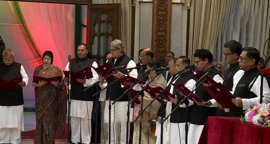 বৃহস্পতিবার সন্ধ্যা ৭টা ৩ মিনিটে বঙ্গভবনে তাদের শপথ বাক্য পাঠ করান রাষ্ট্রপতি মো. সাহাবুদ্দিন।