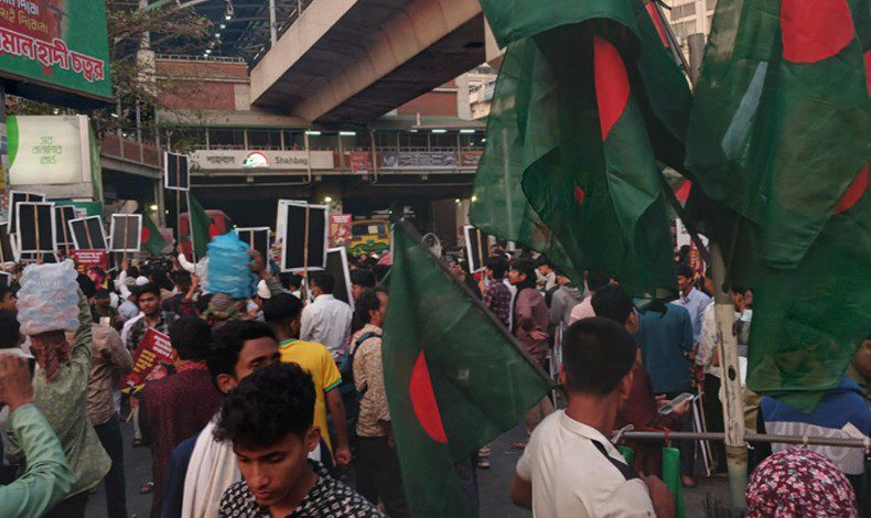 পুলিশি হামলা ও ভারতীয় ষড়যন্ত্রের প্রতিবাদে রাজধানীর শাহবাগ মোড় অবরোধ করেছেন জুলাই ঐক্যের নেতাকর্মীরা। শনিবার (৭ ফেব্রুয়ারি) বিকেল সাড়ে ৫টার দিকে মঞ্চের নেতাকর্মীরা জাতীয় পতাকা ও বিভিন্ন প্ল্যাকার্ড হাতে শাহবাগ মোড়ে জড়ো হন। এতে রাজধানীর গুরুত্বপূর্ণ এই পয়েন্টে যান চলাচল বন্ধ রয়েছে।