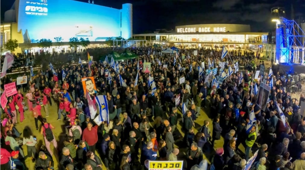 তেল আবিবের হাবিমা স্কয়ারে অনুষ্ঠিত সাপ্তাহিক মূল সরকারবিরোধী বিক্ষোভে হাজারো মানুষ অংশ নেন বলে হিব্রু গণমাধ্যম ও বিক্ষোভ আয়োজকদের বরাত দিয়ে শনিবার (১৭ জানুয়ারি) এক প্রতিবেদনে জানিয়েছে টাইমস অব ইসরাইল।