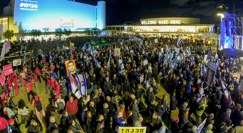 তেল আবিবের হাবিমা স্কয়ারে অনুষ্ঠিত সাপ্তাহিক মূল সরকারবিরোধী বিক্ষোভে হাজারো মানুষ অংশ নেন বলে হিব্রু গণমাধ্যম ও বিক্ষোভ আয়োজকদের বরাত দিয়ে শনিবার (১৭ জানুয়ারি) এক প্রতিবেদনে জানিয়েছে টাইমস অব ইসরাইল।