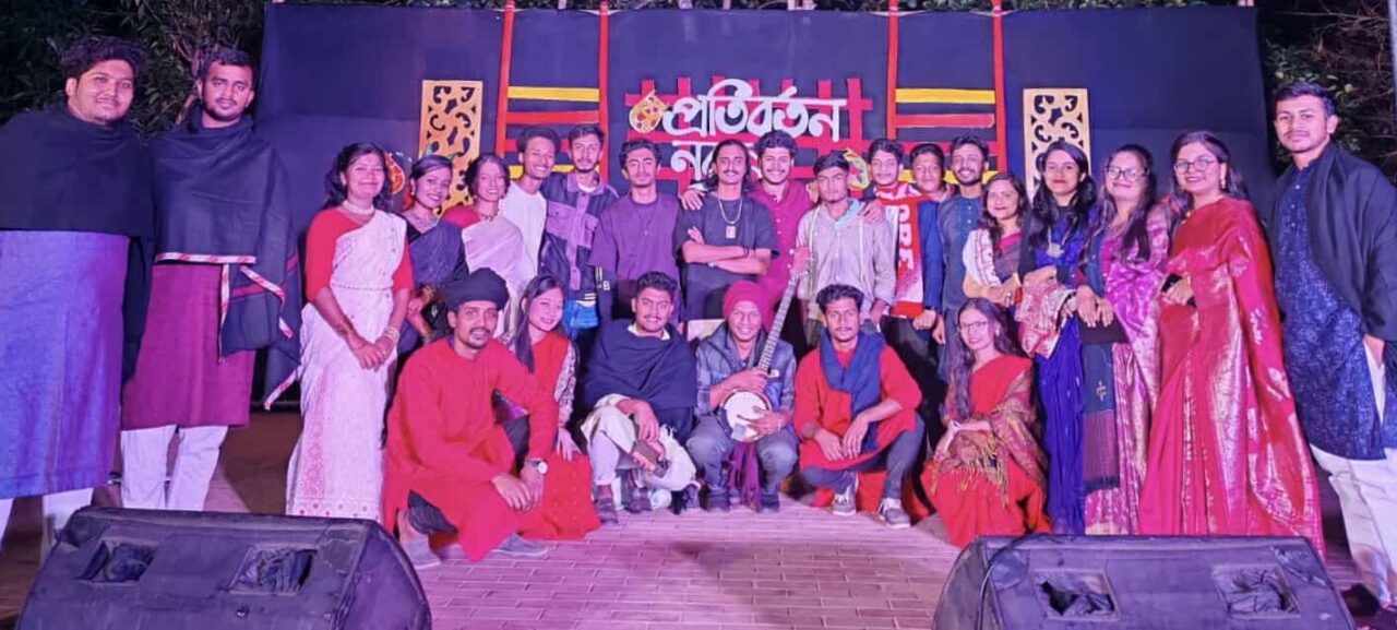 ততক্ষণে মুক্তমঞ্চে আলো ফুটল বাঁশির সুর আর তবলা ও এসরাজের মেলবন্ধনে। প্রতিবর্তনের অনুষ্ঠানে জড়ো হয়েছেন কয়েক শ শ্রোতা ও দর্শক। অনুষ্ঠান শুরু হয় বিখ্যাত গীতিকার আব্দুল লতিফ এর কোরাজ সংগীত ‘ও ধান ভানিরে ঢেঁকিতে পার দিয়া’ দিয়ে।