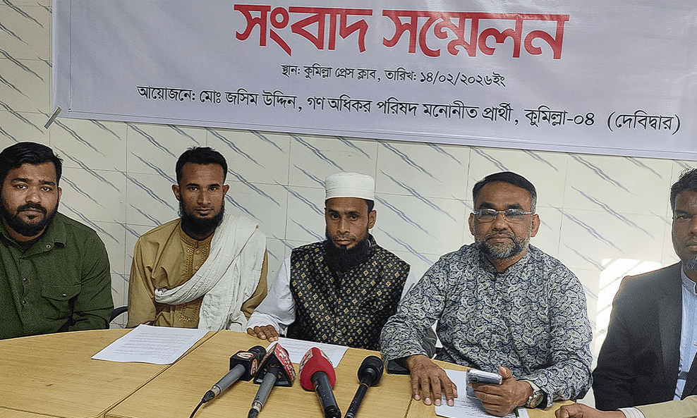 ত্রয়োদশ জাতীয় সংসদ নির্বাচনে কারচুপির অভিযোগ এনে ভোট বাতিল ও পুনঃভোটের দাবি জানিয়েছেন কুমিল্লা-৪ (দেবীদ্বার) আসনের বিএনপি জোট ও গণঅধিকার পরিষদের মনোনীত প্রার্থী মো. জসিম উদ্দিন। শনিবার (১৪ ফেব্রুয়ারি) বিকেল ৪টায় কুমিল্লা প্রেস ক্লাবে সংবাদ সম্মেলন করে তিনি এ দাবি জানান।