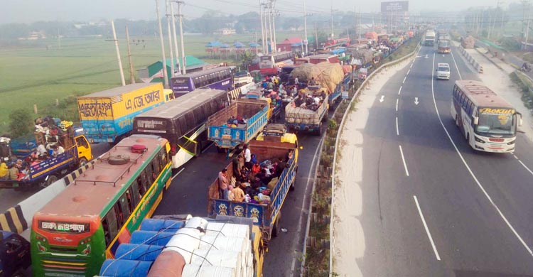 ঢাকা-টাঙ্গাইল-বঙ্গবন্ধু সেতু মহাসড়কে গাড়ির চাপ দ্বিগুণ বৃদ্ধি পেয়েছে। এ কারণে মহাসড়কে যানজটের সৃষ্টি হয়েছে। এতে চরম ভোগান্তিতে পড়েছেন যাত্রীরা। গভীর রাতে শুরু হওয়া এ যানজট ১৭ কিলোমিটার এলাকাজুড়ে বিরাজ করছে।