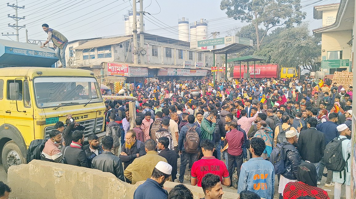 সাভারের আশুলিয়ায় অতিরিক্ত বাস ভাড়া আদায়ের অভিযোগে নবীনগর-চন্দ্রা মহাসড়ক অবরোধ করেছেন পোশাক শ্রমিক ও ঘরমুখো মানুষেরা।