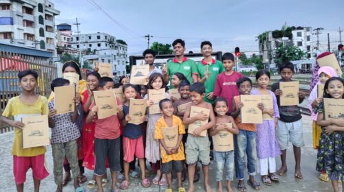 কুমিল্লা রেল স্টেশনে টিফিনের টাকায় পথ শিশুদের শিক্ষা উপকরণ উপহার