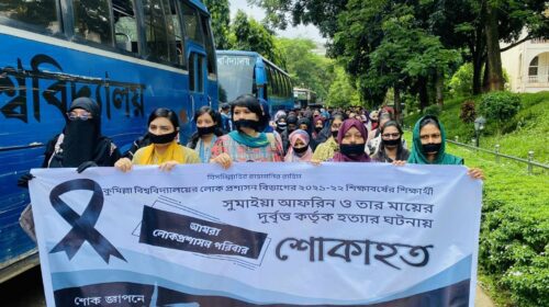 কুবিতে সুমাইয়া হত্যাকাণ্ডে মুখে কালো কাপড় বেধে মৌন মিছিল