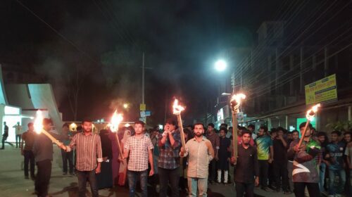 কুবিতে ছাত্রলীগ নেতাকর্মীদের প্রতীকী মিছিল