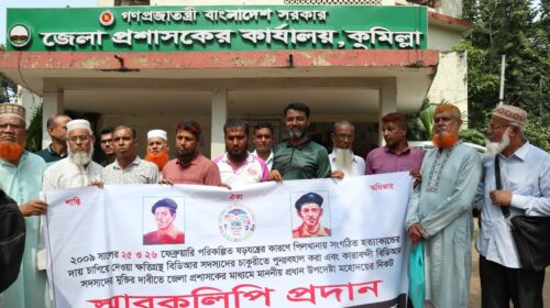 স্টাফ রিপোর্টার: ২০০৯ সালের পিলখানা হত্যাকাণ্ডের সুষ্ঠু তদন্ত এবং চাকুরীচ্যুত বিডিআর সদস্যদের পুনর্বহালের দাবিতে কুমিল্লার জেলা প্রশাসকের কাছে স্মারকলিপি প্রদান করেছেন ক্ষতিগ্রস্ত বিডিআর সদস্যরা। বুধবার দুপুরে অর্ধশতাধিক বিডিআর সদস্য জেলা…