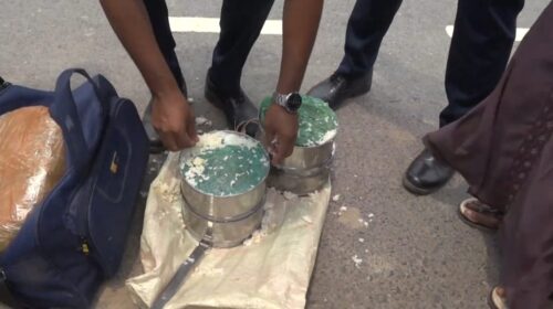 স্টাফ রিপোর্টার: ভাতের টিফিন ক্যারিয়ারে উপরের বাটিতে রান্না করা মুরগির মাংস। তার নিচে তিনটি বাটিতে গাঁজা রেখে উপরে ভাতের আবরণ দেওয়া। প্রথম দেখায় যে কেউ ভাববেন, কারো জন্যও রান্না করে…