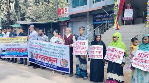 স্টাফ রিপোর্টার: বীর মুক্তিযোদ্ধার সন্তান মোসরাত জাহান মুনিয়ার সু-পরিকল্পিত হত্যাকান্ডের সাথে জড়িতের অভিযোগে সায়েম সোবহান আনভীরকে অবিলম্বে গ্রেফতার , দৃষ্টান্তমূলক শাস্তি ও মামলার বাদীর নিরাপত্তা নিশ্চিতকরনের দাবীতে কুমিল্লায় মানববন্ধন…