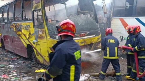 ডেস্ক রিপোর্ট: রাজধানীর মানিকনগর চৌরাস্তা এলাকায় একুশে এক্সপ্রেস পরিবহনের তিনটি বাসে আগুন দিয়েছে দুর্বৃত্তরা। এ ঘটনায় ফায়ার সার্ভিস ও সিভিল ডিফেন্সের তিনটি ইউনিট কাজ করেছে। বুধবার (৬ ডিসেম্বর) বিকেল ৪টা…