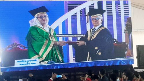 ডেস্ক রিপোর্ট: বিশেষ সমাবর্তনে জাতির পিতা বঙ্গবন্ধু শেখ মুজিবুর রহমানকে ডক্টর অব লজ (মরণোত্তর) ডিগ্রি দিয়েছে ঢাকা বিশ্ববিদ্যালয়। বঙ্গবন্ধুর পক্ষে এ ডিগ্রি গ্রহণ করেন তার কন্যা প্রধানমন্ত্রী শেখ হাসিনা। এ…