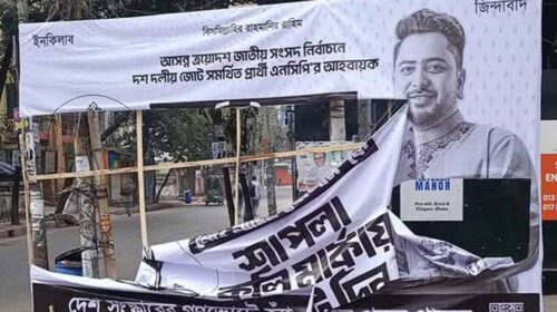 গণজোয়ারে ভয় পেয়ে মাফিয়া গোষ্ঠী বিলবোর্ড ও ব্যানার ছিঁড়ে ফেলছে বলে অভিযোগ করেছেন ঢাকা-১১ আসনে ১১-দলীয় জোট মনোনীত প্রার্থী এবং জাতীয় নাগরিক পার্টির (এনসিপি) আহ্বায়ক নাহিদ ইসলাম। তিনি বলেছেন, শাপলাকলির…